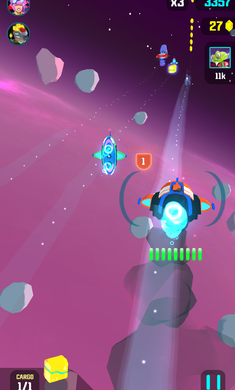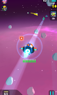 游戏画面明亮且令人愉快,展现出这是一款可爱的小游戏。玩家通过点击飞船左右两边的按钮来控制飞船的方向,途中要注意躲避可能会遇上的小行星和宇宙盗贼,同时也可以通过点击屏幕对它们进行射击。