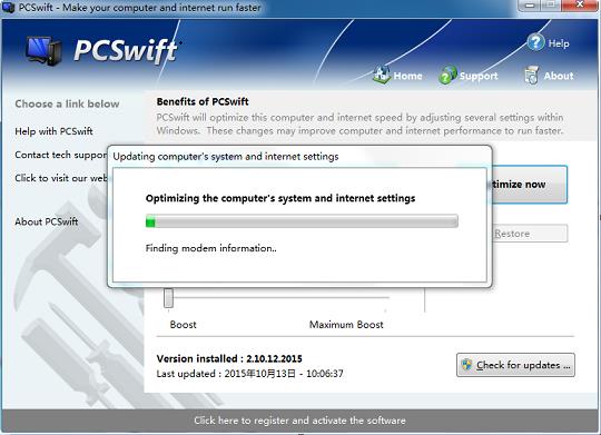 PCSwift执行快速热身,解决问题和优化您的计算机的性能和您的互联网用鼠标点击几下的速度。