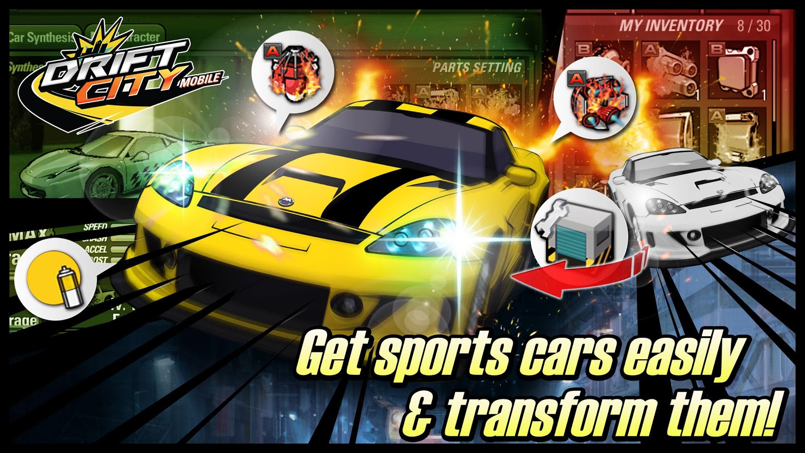 “漂移之城移动版”是来自流行在线竞速游戏“漂移之城”的继任者,有用更多的玩家在不同的城市间竞速。只需简单的点击屏幕即可让你移动你的车辆来躲避其他车辆并获得连击。若在赛道上取得物品后,你还可以加速至最高时速!在“漂移之城”中,你将是正义队伍中的一份子,并追逐邪恶组织“HUV”。游戏中需要不断撞击“HUV”成员的车辆来停止他们!