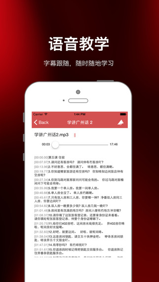 粤语流利说苹果版你可以免费学习到我们提供的广东话学习[粤语学习]的音频教程。一切从语感出发,让你掌握得更快更准,大家好好学习吧,粤语学习网祝大家早日学成广东话哦!