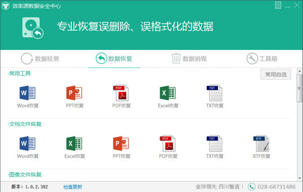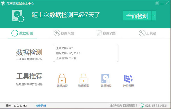 效率源数据安全中心是一款功能强大的数据恢复和数据安全软件,这款软件主要提供了硬盘检测、数据恢复、数据销毁、数据加密等功能,软件可以运用一系列可恢复数据的算法,帮助用户恢复误删除、误格式化的数据,同时可以优化硬盘的读取速度和性能,让您的电脑变得更加“轻松”。