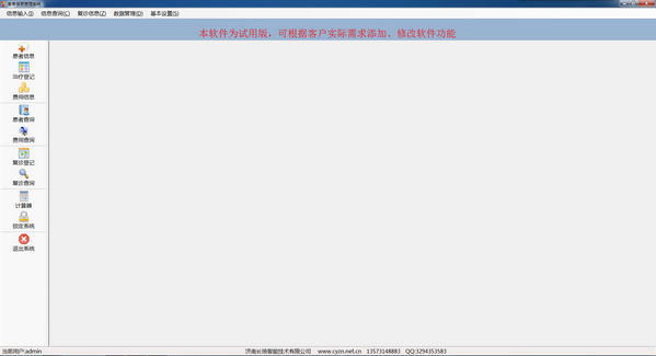 长扬智能患者信息管理系统以友好的人机界面,方便快捷的功能将日常繁琐而费神的工作改为轻松的人机对话来实现。软件结构清晰、界面简洁,无需专业培训就可轻松应用。完善的系统带有还原、备份功能;安全、稳定的可操作性数据。随时备份确保使用安全无忧。如想恢复数据,一键操作即可恢复。【软件特点】
