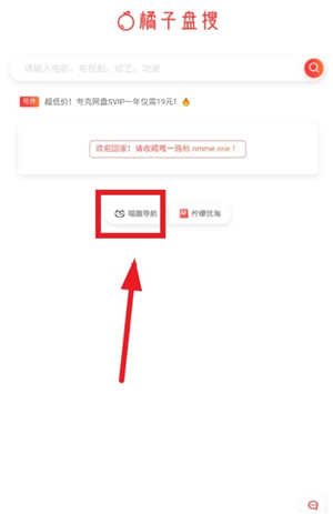 1. 进入橘子盘搜之后,挑选喵趣导航