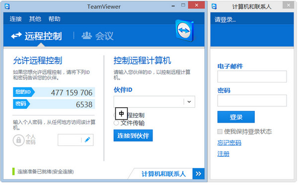 teamviewer 8 破解版是一个在任何防火墙和NAT代理的后台用于远程控制,桌面共享和文件传输的简单且快速的解决方案,只需要输入你的伙伴的id到teamviewer绿色版,然后就会立即建立起连接。