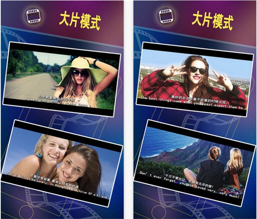 +大电影模式:重新设计你的照片,裁剪,添加字幕,如同融入到电影当中+易于分享:可以保存到本机,也可通过设计工具分享给你的朋友