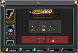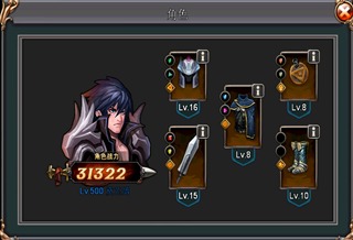 显示角色的战力、等级及装备的基本情况,包括武器,衣服,鞋子,饰品和头盔。