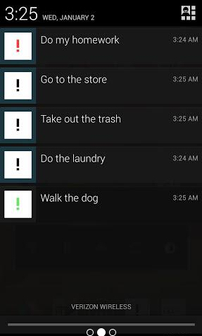 2、只要设定通知内容就会像牛皮藓广告一样粘在通知栏上,除非点下"完成任务"不然无法删除。