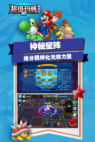 《超级玛丽3D》是一款打斗带感、3D画面酷炫的创新性动作手游,此次马里奥化身为最强王者,率领众多经典动漫明星,为爱复出!随机出现的奇遇挑战再现街霸打汽车、马里奥接金币等经典的玩法。摇杆控制及技能释放让你巧妙连招,痛快打击!独有的称号、专属装备、奥义系统不仅可以让你专治各种不服,更是助力英雄成为最强王者的必经之路!多种玩法根本停不下来!王者归来,《超级玛丽3D》重燃你的斗志,这里有我们的金色童年,这里有我们的青春热血,这里有永恒不变的激情,这里,有最重要的兄弟!