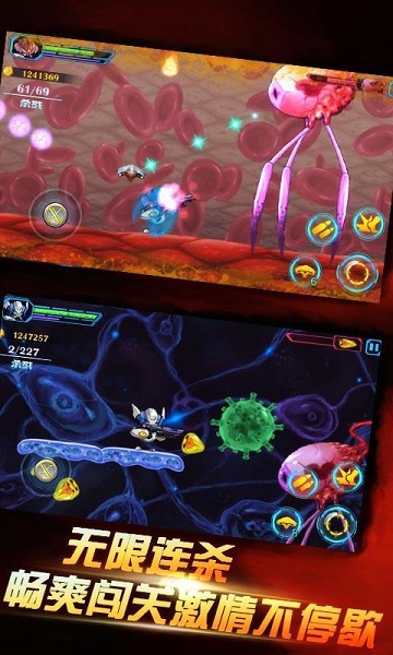 消灭埃博拉破解版是一款以埃博拉病毒为题材的横版射击游戏,这款游戏内容丰富,角色设定独特,玩家在游戏中将扮演一名进入小女孩体内的纳米机器人,为了拯救这名被埃博拉病毒感染的小女孩,玩家需要通过种种阻碍,肃清女孩体内的病毒。