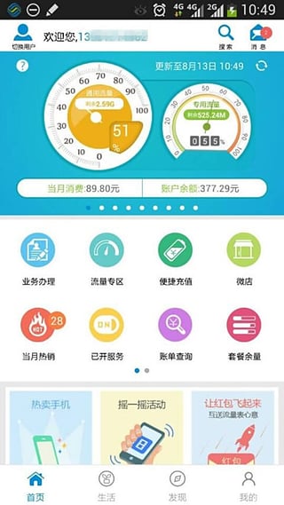 掌上营业厅客户端(江苏)可快捷进行话费充值、业务办理、终端预约;方便查询优惠活动,话费、流量、套餐使用情况,以及历史账单详单,支持300余项热门业务办理,还有丰富的优惠活动可以参加哦!便捷服务,一触即发!【软件特点】