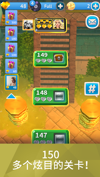 各种关卡,种类繁多,挑战自我。解锁宝箱,打破镜子,赢得高分,打通关卡 – 甚至可以在计时挑战中,对 Shakira 的积分发起冲击!