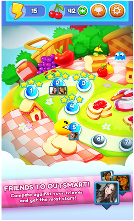 游戏当中的主角当仁不让的还是那些可爱的吃豆人,不过与35年前的吃豆人相比,画面已经非常鲜艳和精致了,吃豆人的形象也变得越来越漂亮了。在游戏当中玩家依然要通过控制这些不断在弹跳的吃豆人吃掉场景当中的豆子,此外还有蛋糕、星星等道具也可以让吃豆人吃了。游戏当中一共为玩家准备了超过100个关卡等待玩家挑战,要想过关可没有这么容易,臭名昭著的坏蛋们可不会让吃豆人轻轻松松通过!