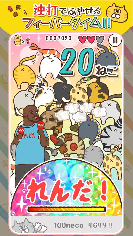 100猫咪!!又是来自霓虹的以喵为主题以狂戳屏幕为游戏内容的休闲游戏,只不过在这里边戳屏幕除了速度还要点技巧的,要是不小心失败可以看个广告继续游戏。