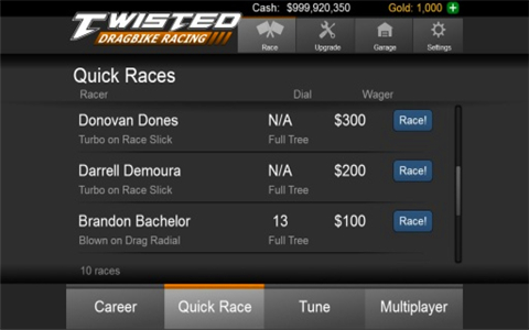 玩家不仅要控制和调整你的摩托车,还必须在其性能达到最佳状态时才能发动。与其他摩托游戏不同,本作并不拘泥于道路上的方法操作,其关键则在于每次加速时段地正规操作与否!由于规则的限制较多,不认真观看教程容易输得很惨哟!