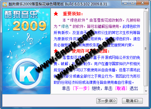 酷狗音乐2009(KuGoo) V6.005 Beta 落雪梨花绿色精简版 1.落雪梨花梨花基于酷狗音乐2009公测版制作(6.0.5.102 2008.8.18);