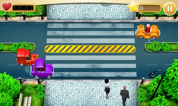 《穿越城市交通CrossRoadTraffic》是一款模拟管理交通运行的休闲游戏,玩家需要保证每个行人安全穿过斑马线,如果有一人被压死即为失败,游戏的操作很简单,点击行人他们便会自动前进,点击汽车则是让其加快行驶,每一群人成功越过马路,难度都会加大一些哟!当你收集了足够星星后,还能在商店内购买必要项目呐!