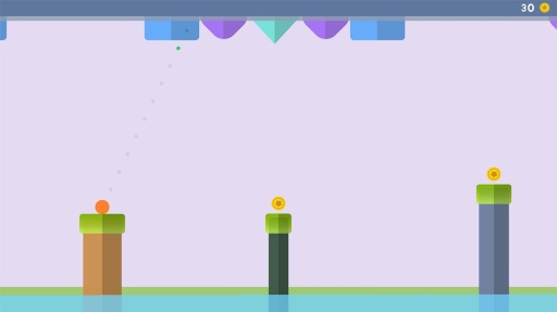 玩家只需调整小球发射的角度,通过墙壁反弹掉落至下一个平台,依次前进。一旦小球没有落在平台上,则游戏结束,结算分数,获得的金币越多则分数越高。