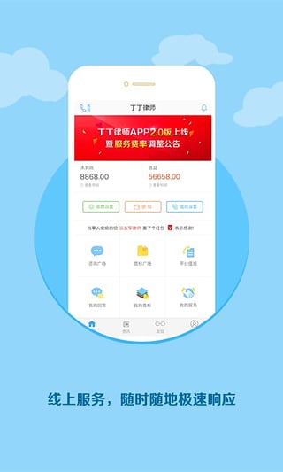 丁丁律师app是一款律师应用平台,离婚纠纷,劳动仲裁,交通事故,合同文书,遗产继承,债权债务,只要通过丁丁律师平台就可以找到专属的法律顾问私人律师,得到即时咨询,及时解答。