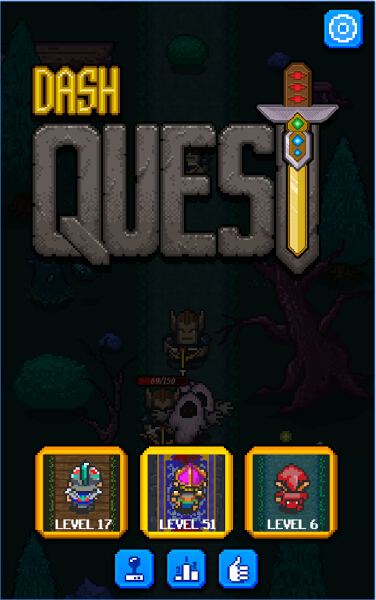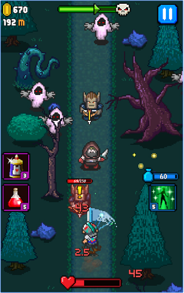 《探索冲刺》 Dash Quest 是一款像素风格的冲刺冒险动作手游,游戏中勇士在森林中勇往直前的冲刺,玩家需要控制他来打败妖怪并且进行防守,点击屏幕左侧会使得英雄发出护盾防守,点击右侧进行攻击,长按屏幕松手就是发射魔法球,赶紧来下载体验吧。