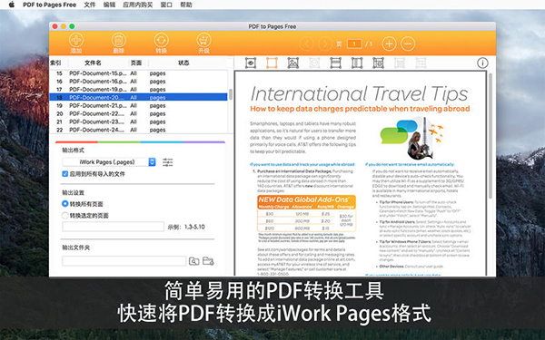 PDF to Pages Free Mac版可以帮助您快速将 PDF文档转换成iWork Pages 文件,让您在 Pages应用里轻松编辑PDF的内容。PDF文档方便分享以及存档,但想要编辑 PDF十分困难。【软件特点】