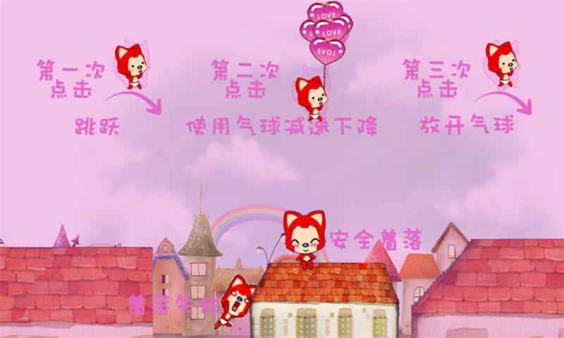 阿狸飞呀飞是一款休闲好玩的益智类游戏。游戏玩法非常简单,玩家需要帮助乘着小气球上升的阿狸,安全的穿梭在各个屋顶上,在气球还未爆炸前,快速的穿过城市中的各个屋顶。
