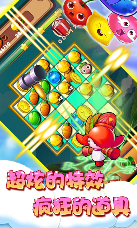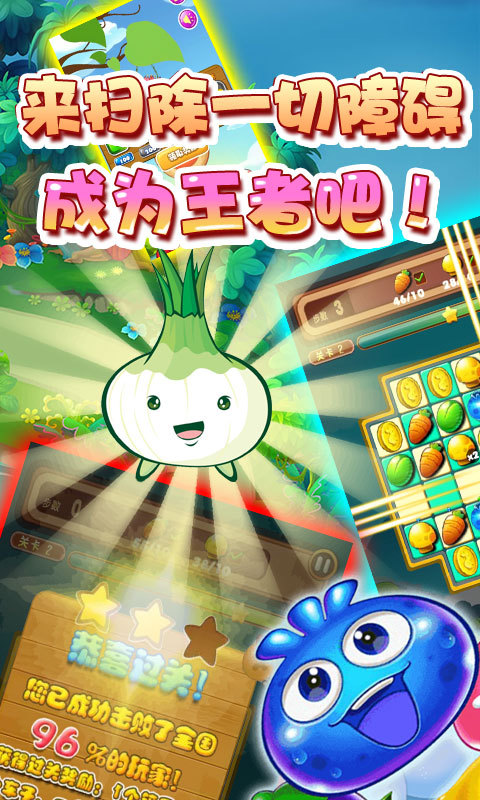 来收蔬菜吧,超萌蔬菜来袭,融合对对碰消除玩法,酷炫动画效果,真实消除体验,上百个关卡等待您的挑战,以消除种类不同的超萌蔬菜为游戏任务主线。你只须用一根手指,轻轻在手机屏幕上做巧妙的滑动,消除同类的蔬菜宝宝,便可轻松获得游戏分数和其他游戏奖励。