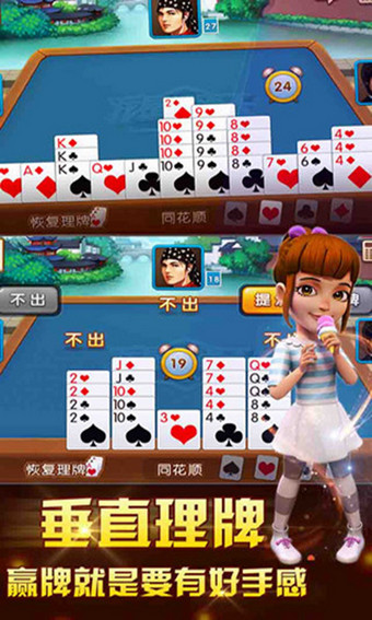 独创垂直理牌界面,画面清爽干净;独创同花顺筛选功能,同花找的方便;
