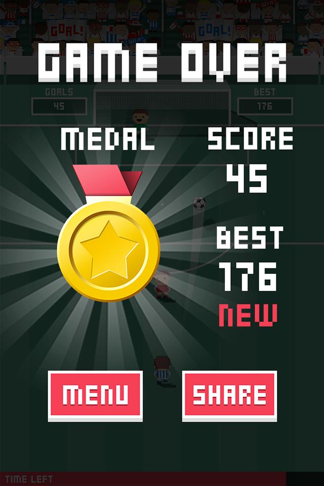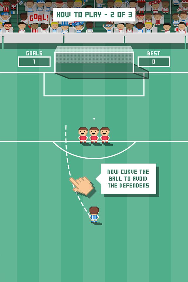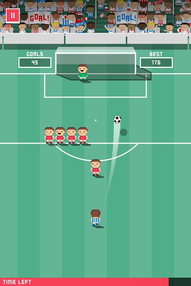 微射门(Tiny Striker)是一款像素风格的竞技类手游,游戏的玩法非常的简单只需轻轻点击下屏幕即可操作,本作是个消磨时间的任意球游戏,防守的人会越来越多,射门次数不限,但每球都有时间限制,有时候角度非常刁钻,需要靠人墙或门柱才能进球