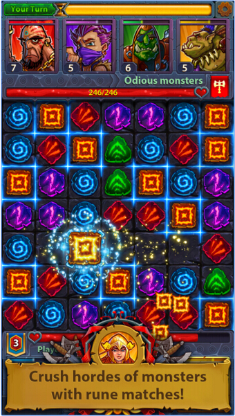 《英雄迷雾(Heroes and Puzzles)》是一款充满神奇魔法色彩的战斗类三消手游,游戏中战斗技能是需要你自己不断的进行升级提升。在这个充满传奇的世界里,玩家需要通过消除符文赋予英雄能量并给予对手狠狠一击,除了在实战中展现精妙的操作以外。