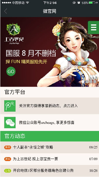 上古世纪app苹果版可以让上古世纪的玩家们通过上古世纪app苹果版扫码登录,查看在线微官网,了解最新上古世纪活动详情以及官方公告等等。