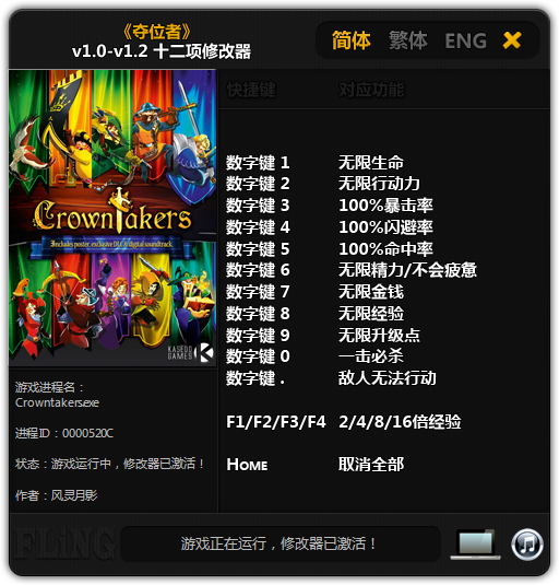 数字键 1 - 无限生命数字键 2 - 无限行动力