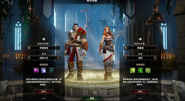 《神界:原罪》为玩家设计了十一种不同的职业,这些职业各具特色、各具独特技能,玩家可以选择自己感兴趣的角色进行游戏,同时在游戏的开始还可以自定这些角色的初始属性。暗刃:这个强大刺客有匕首和魔法作为武器,任何曾经目睹过他的人都被吓得肝胆俱裂。其天赋为“游记”和“水蛭”,初始技能为流血、压颅器、刀锋边缘。