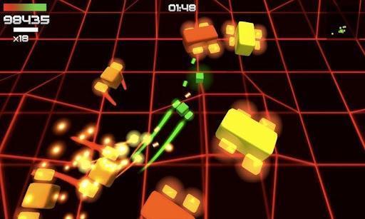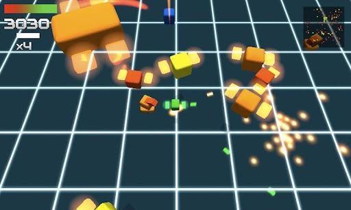 游戏玩法很简单,你的目标就是控制自己的魔方在地图上移动并向敌人射击。敌人其实和你一样都由魔方组成,它们来自四面八方,你要想办法躲避敌方攻击并消灭它们。游戏采用现代3D效果呈现了一种复古的画面。你的战场就在三维网格中,你和敌人的外形都只是简单的彩色方块而已。但这丝毫不影响游戏的魅力,简单的画面反而突出了射击游戏最本质的主题。