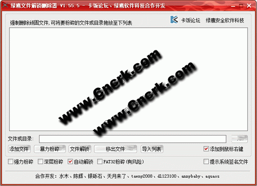 强制解锁删除顽固文件目录, 辅助粉碎杀除病毒木马文件。可查看系统中所有打开文件由何进程占用,深层监控。通过鼠标右键或托放选择文件,轻松便捷。