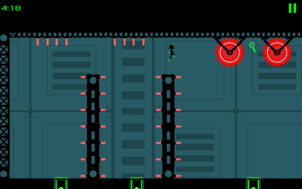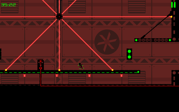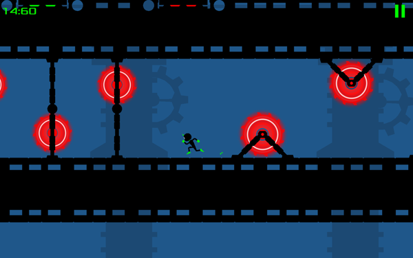 据悉本作一共为我们带来了60个游戏关卡,5个可以选择的独特角色。玩家将在遍布着激光、电锯以及尖刺等陷阱的场景中冒险前行。游戏分别以红色和绿色来表示危险与安全区域,而玩家要做的就是要确保小人远离带有红色亮光的物体或区域,与绿色相伴,在保持节奏的前提下与一路狂奔。
