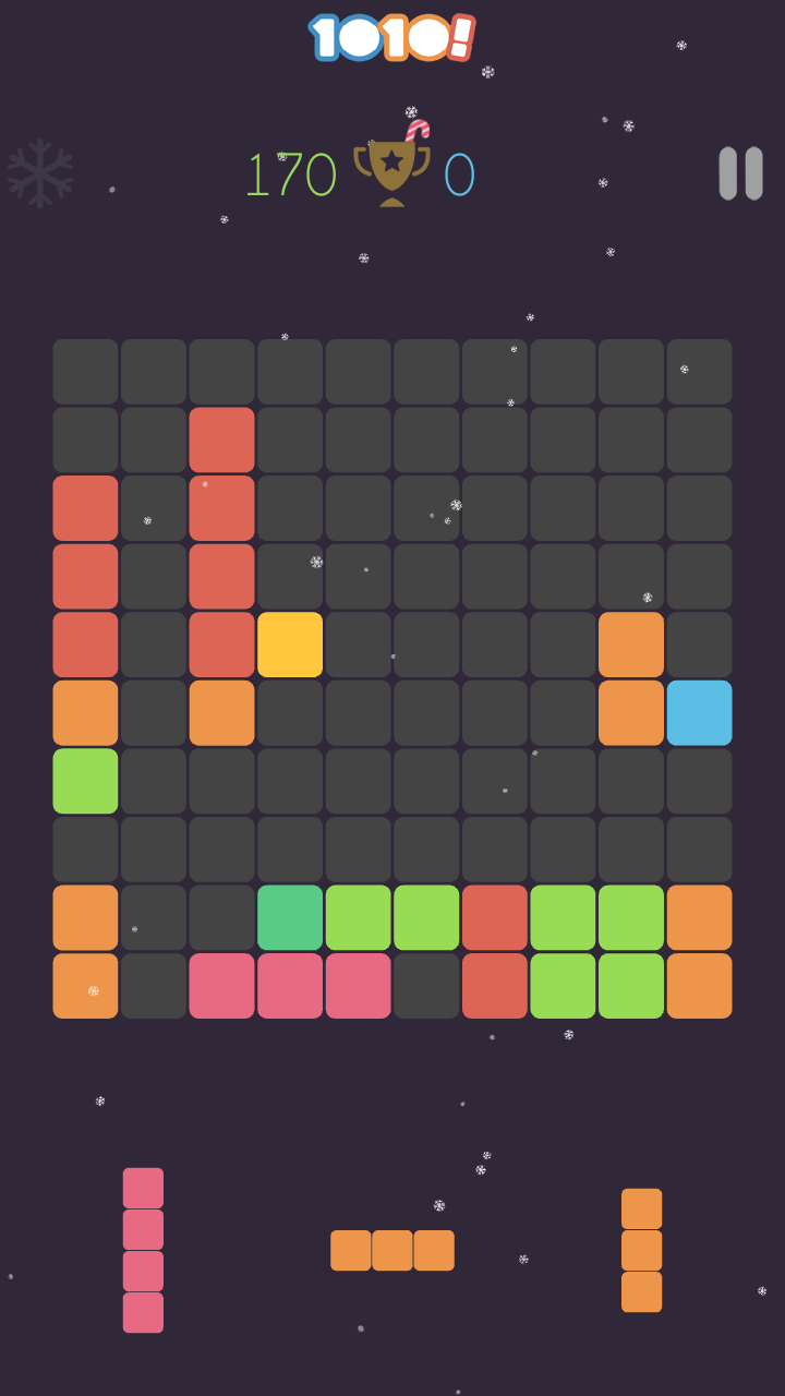 疯狂方块1010!作为一款桌游类的简约游戏,疯狂方块(1010!)的操作完全通过点触和划动来完成,加上方块本身不能旋转,因此游戏连教学都省了。这样一款上手时间为0的游戏真正是全年龄无性别的通吃。只要你有一点时间,就可以拿出来玩两把,当然如果你的目标是拿高分,那还是乖乖的选个安静的场所吧!同时也是一款引人入胜的益智游戏,玩法简单但有特色。疯狂方块(1010!)简单易学且玩法有趣,是一款完美的手机益智游戏。在这款让人入迷的益智游戏中,只需将模块拖放到屏幕中,在垂直和水平方向创建并消除整行模块,阻止模块填满整个屏幕。在疯狂方块(1010!)中,你可以连接到你的Facebook账户同你的朋友比赛!没有时间限制,无需颜色搭配!用匹配的模块填满所有网格,享受这款益智游戏!