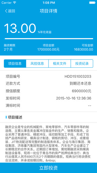 汇盈金服iPad版是由一支有着丰富金融、经管、点子商务及互联网经验的团队组成。汇盈金服iPad版以产品丰富,多种利率灵活期限供您选择,1元起投,同时在2015年11月25日至12月26日期间,注册即赠送10888元体验金,利息可提现。