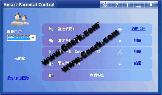 Smart Parental Control V2.0 汉化绿色特别版 您是否想知道您的孩子在电脑上呆了多长时间或者他们到底在电脑上都玩了些什么?Smart Parental Control 可以让您通过活动日志、屏幕截图以及限定禁止访问的Intermnet 内容、限定禁用程序、限定禁用时间等已设定的规则来控制任意的用户。活动程序模块以不可见模式运行,同时提供了密码保护运行模式。