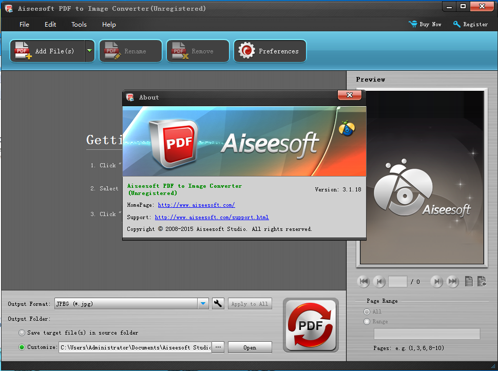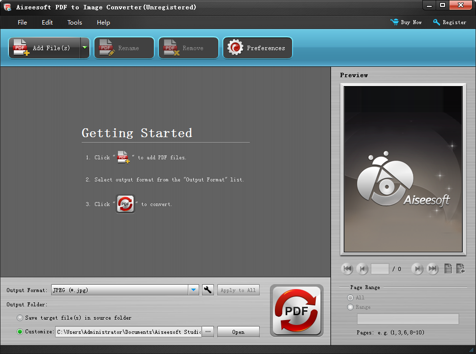 Aiseesoft的PDF格式的图像转换器能够PDF文件转换为大量的图像文件供您选择高品质。