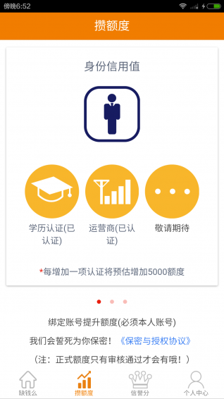 3、优化资料认证流程,填写资料越多,可用额度越高;