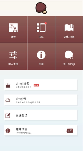 simeji图标进行重新设计!设置界面大革新!键盘设置更简单!新增按钮皮肤!输入更方便!请务必尝试一下simeji的樱花皮肤!【关于Simeji】