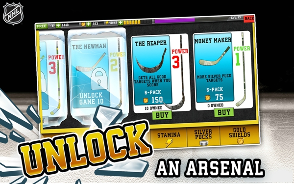 玩家在《NHL目标粉碎NHLHockeyTargetSmash》中,要尽可能保持连中的状态,才能带领球队获胜,赢取高分。而获得高分的技巧包括,尽力保持连中,注意时间限制,多使用抖腕射门使得射门速度加快,多集中小目标得分更高,用强力击球或者力量更大的球棍去击打冰冻或者带盔甲的目标,小心防守球员,他们会打破你的连中记录和耗费你的时间,打掉水瓶获得高分,让你的射门远离守门员,尝试PuckandStick的组合。【游戏特色】