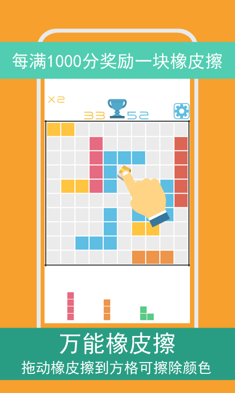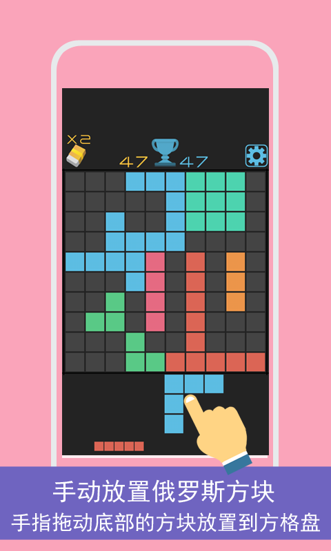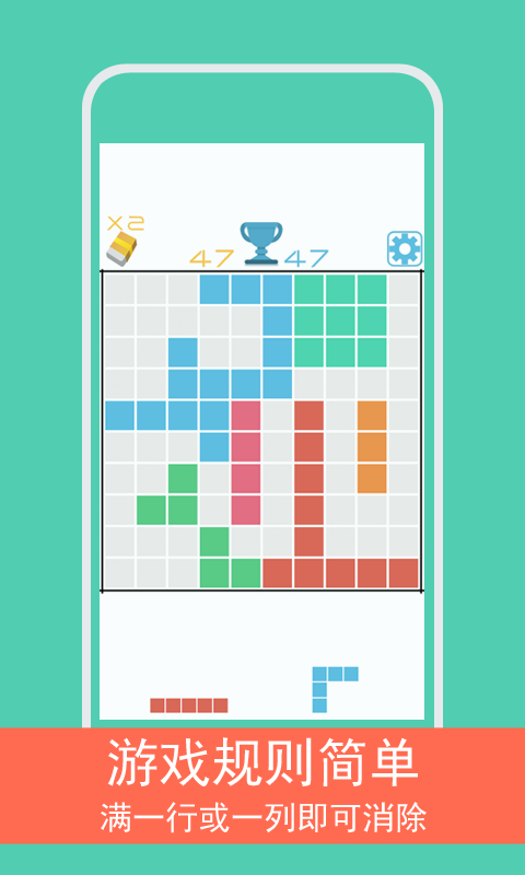 儿时的经典游戏还记得吗?和单调的黑白俄罗斯方块说拜拜吧,《方块1010+》亮丽的色彩搭配,简单的10*10棋盘格,打破俄罗斯方块的逻辑玩法,彩色方块组合可以自行手动放置,而不是被动落下,是否相同颜色的才会消除?NO,只要凑满一行或者一列就可以消除,良心之作,嗨起来吧。【游戏玩法】