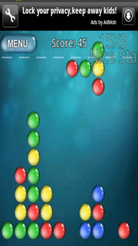 游戏的玩法非常简单,只要相邻的两个或两个以上的泡泡颜色一样即可点击进行消除。一次性消除的相同颜色的泡泡越多,所得的积分也越多,消除泡泡的时候会有泡泡破灭的动态效果和积分提示。如果玩家觉得太浪费时间,可以在设置中将“Animations”调整为FastMotion。