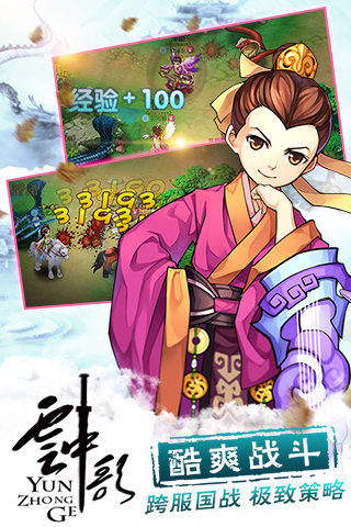 《云中歌》手游改编自由Angelababy、陆毅等主演的电视剧《大汉情缘之云中歌》并得到了小说原作者桐华的亲笔授权。讲述了清婉美丽的云歌与公子孟珏、汉昭帝刘弗陵之间发生的一段段绚烂传奇的爱情故事。游戏不仅重新还原了剧中经典的面和剧情,更是在场景设置以及画面细节上完美贴合原著。十年诺言,半生守候,无论小说、电视亦或者游戏,让我们再次见证那段千古佳话。【游戏特色】