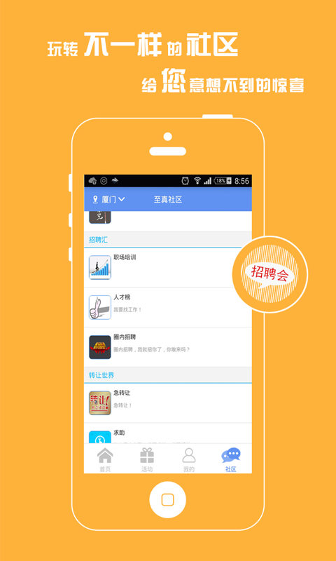 6.身边社区平台,可自拍,吐槽,分享心情,约场馆,约交流,找投资,找工作