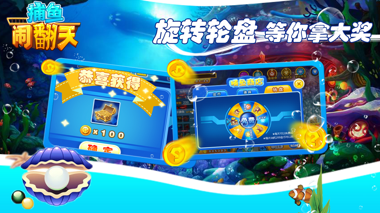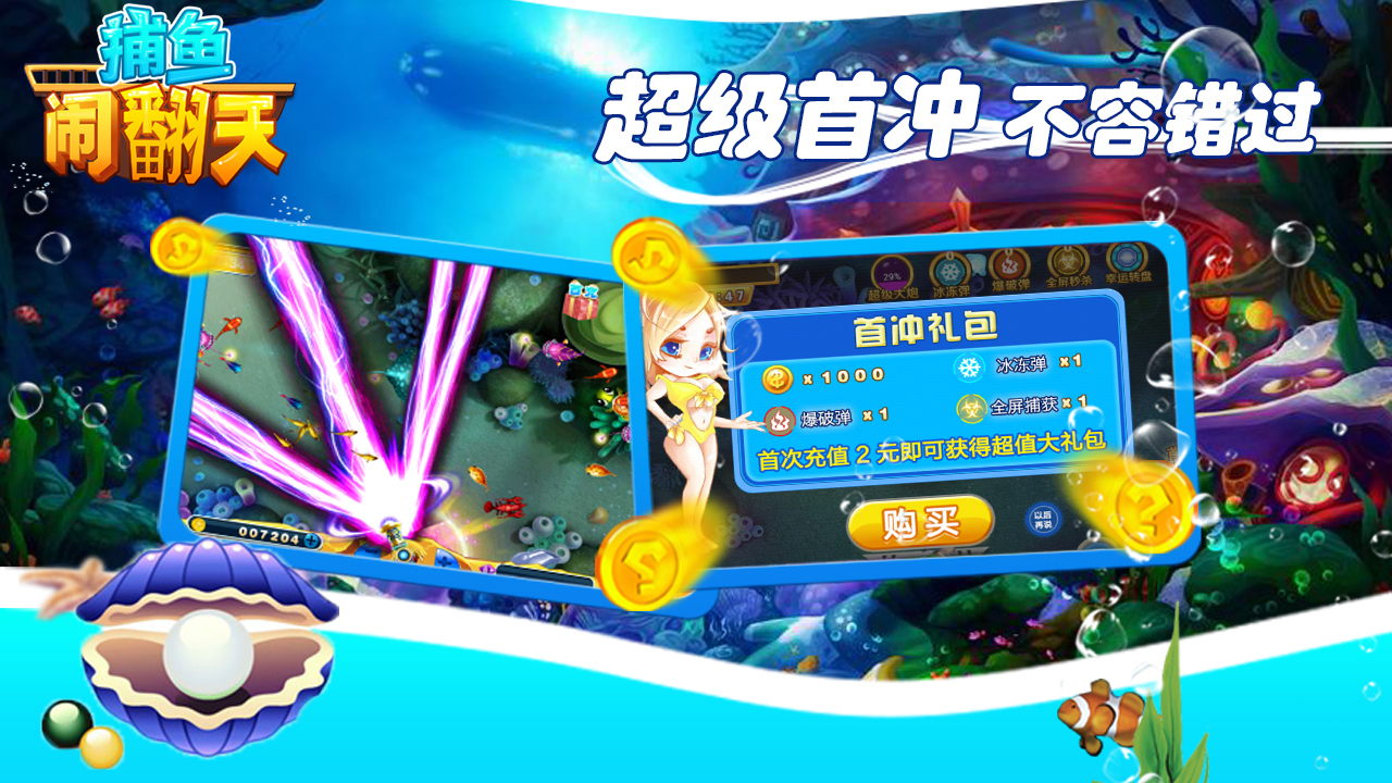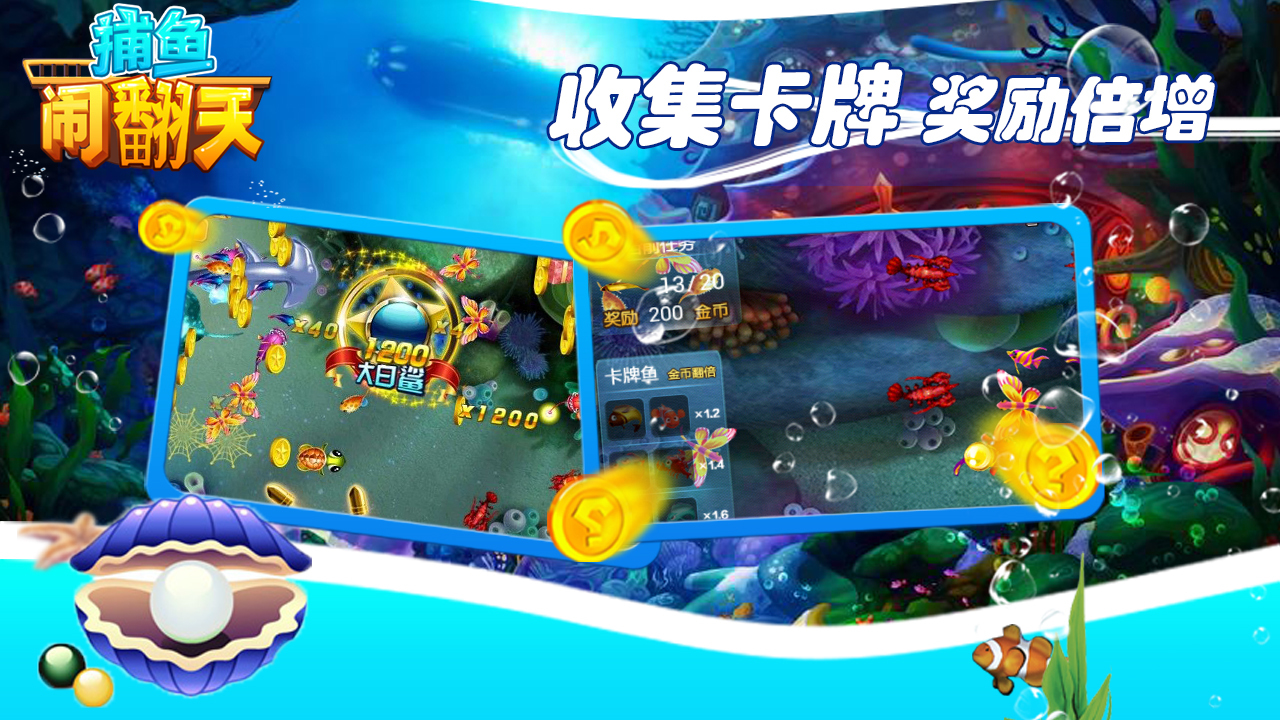 捕鱼闹翻天是一款非常好玩的捕鱼类手机游戏,这款游戏以各类美丽而又神秘的海底场景作为游戏背景,同时画面十分的精致,内容设计也精彩有趣,并且炮种丰富,玩法多样,操作简单易上手,玩家可以在游戏中享受不一样的捕鱼乐趣。