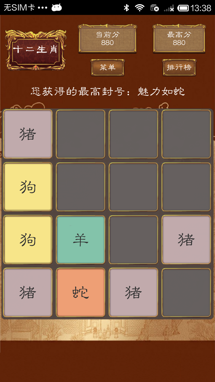 2048十二生肖是一款容易上瘾的手机版2048游戏,好玩到根本就停不下来!2048与十二生肖的完美结合,让你玩得停不下来~,每次可以选择上下左右其中一个方向去滑动,每滑动一次,所有的人物方块都会往滑动的方向靠拢外,系统也会在空白的地方随机出现一个生肖方块,相同生肖的方块在靠拢、相撞时会相加。更有消除功能,让你随心所欲消除已经出现的方块。【游戏特色】