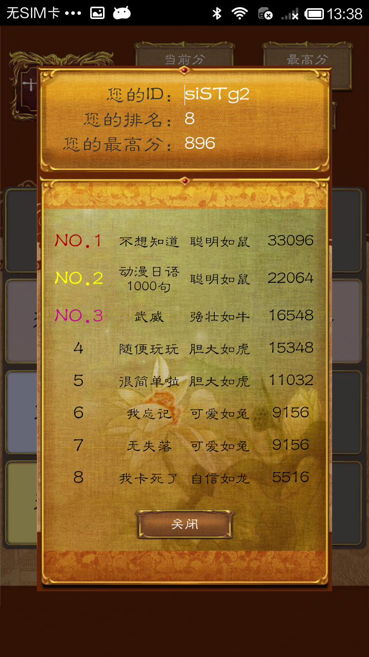 分享系统和排名系统,让你获得成就感的同时轻松的将成绩分享给好友,你可能喜欢华丽的地调,但是也不要拒绝赤裸裸炫耀智商的机会,这也是人生乐趣。