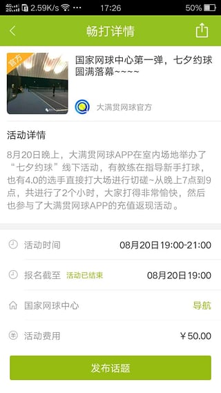 快捷发布约球信息,信息还可分享至微信好友、朋友圈,方便您更快找到球友。
